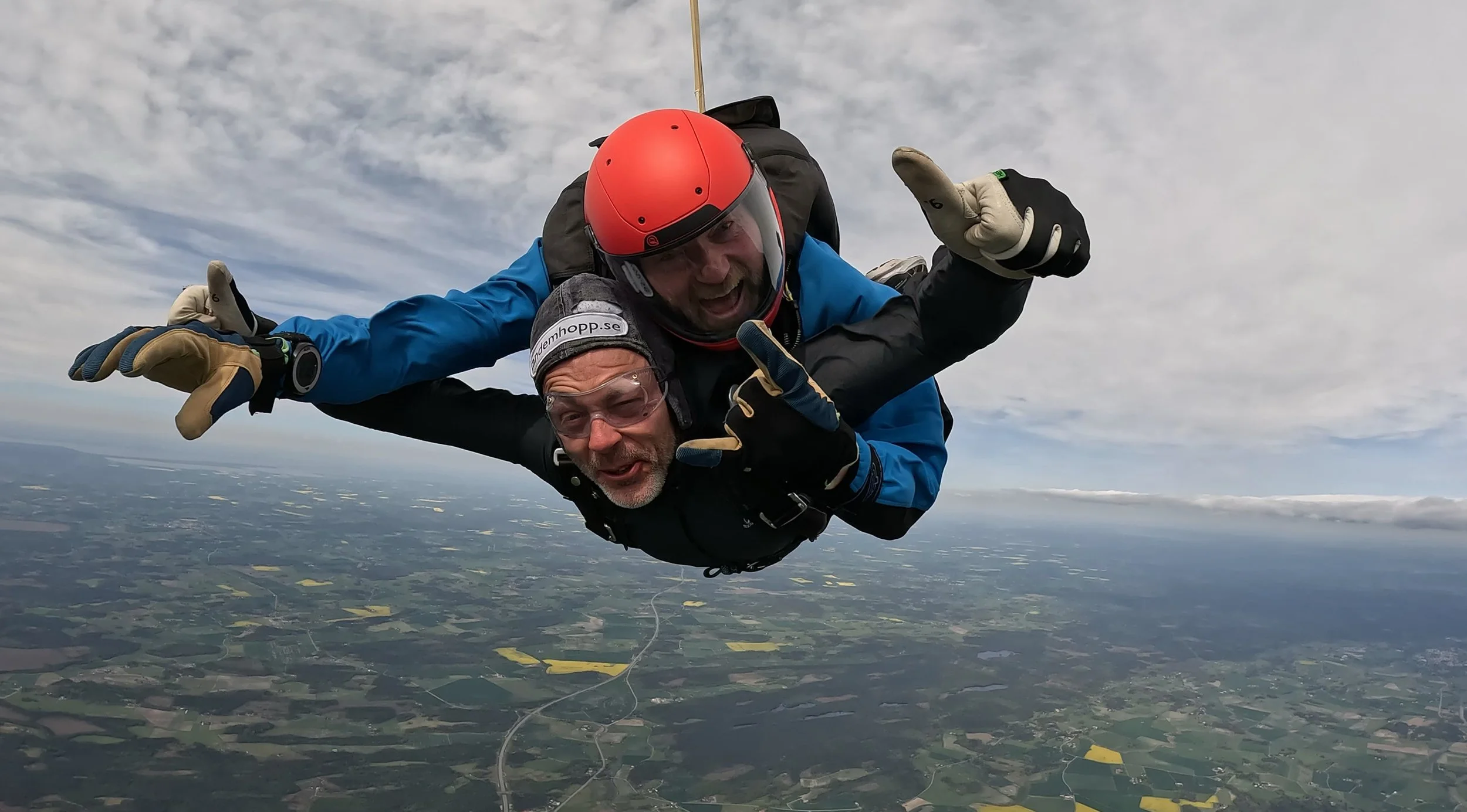 Hos oss får du testa ett tandemhopp tillsammans med våra erfarna och certifierade instruktörer. Tillsammans tar vi dig med på ett hisnande äventyr högt över marken!